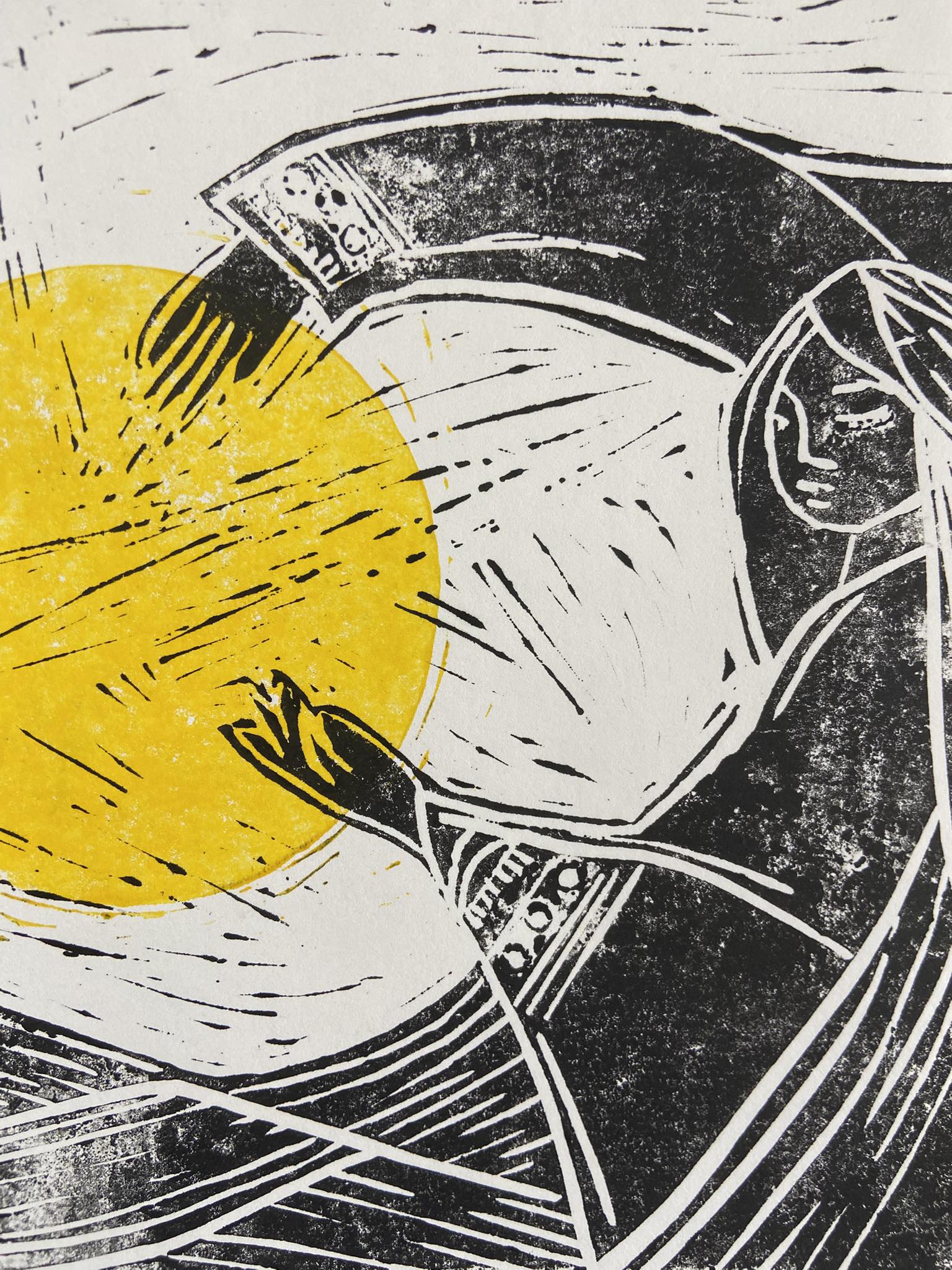 Femmes en lumière, version 1 en linogravure.