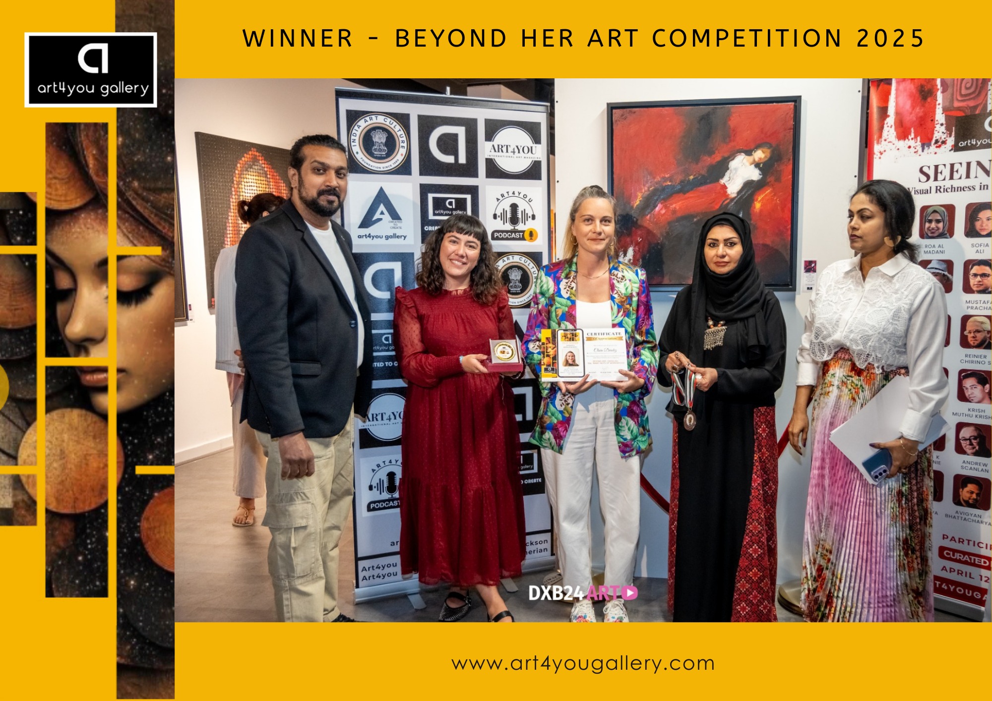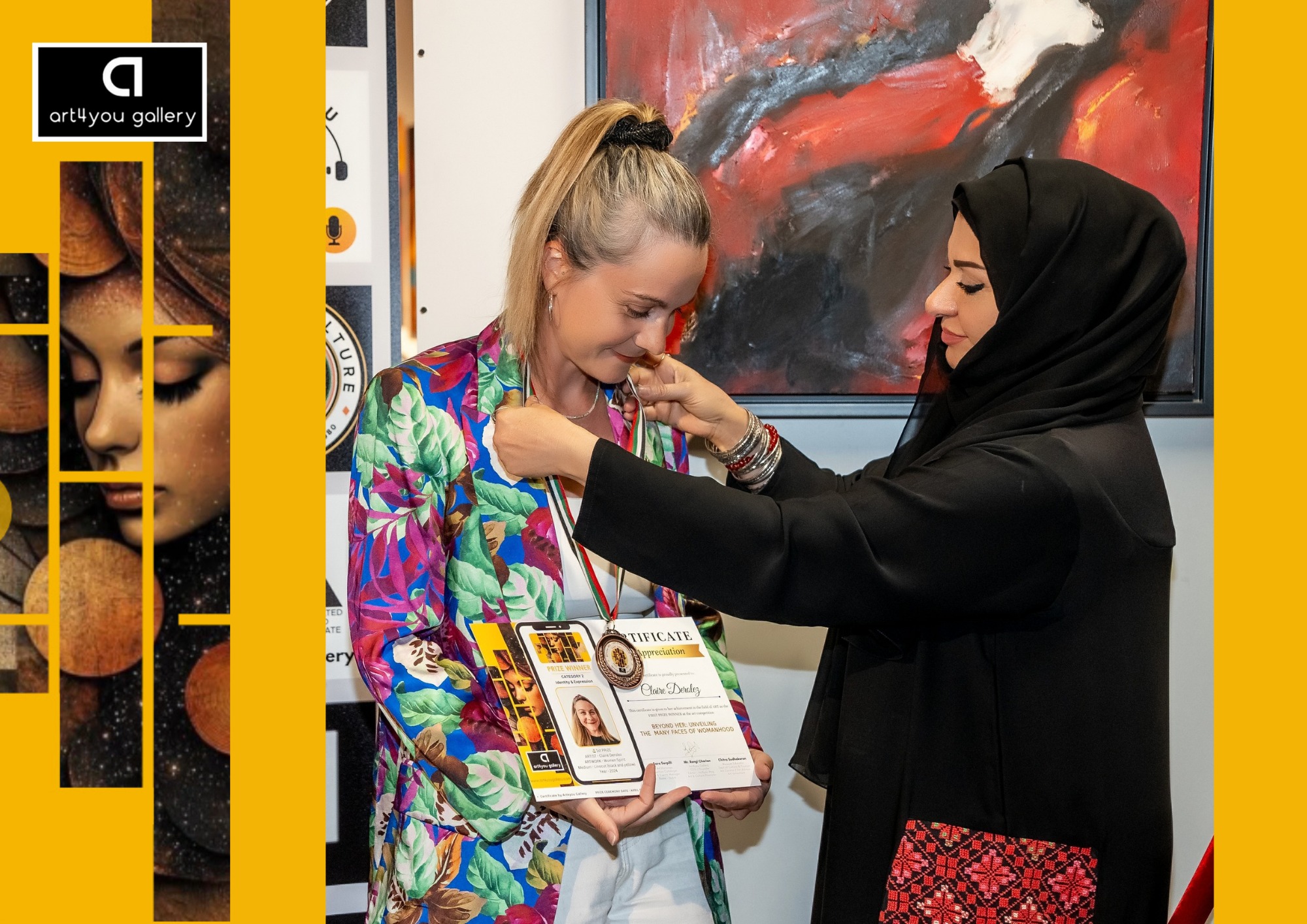 Participation au concours organisée par la galerie Art4you de Dubai en avril 2025. 1er prix dans la catégorie « Identité et Expression ». Exposition virtuelle et édité dans un catalogue. Réalisation d’un tryptique « Women Spirit » en linogravure, également présenté à l’exposition « Women in light » à la Sorbonne Abu Dhabi.
